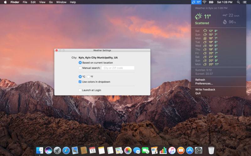 This is a simple and beautiful menu bar application that shows local weather conditions based on your location.