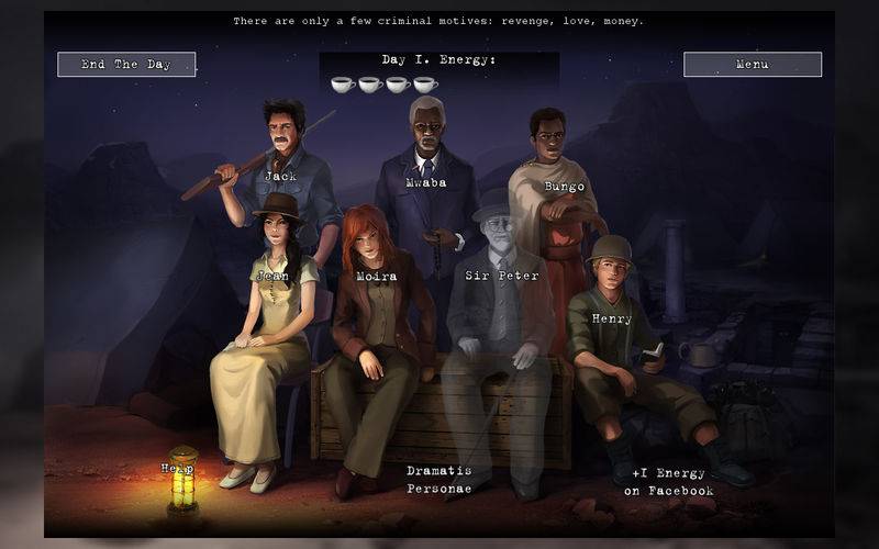 This original game is based on classical english detective rules. Everyday someone dies and you need to figure out who is the killer. Everybody has a common mystery story of the past. Everybody could have a motive to do this. And you have only seven days to stop the murderer.