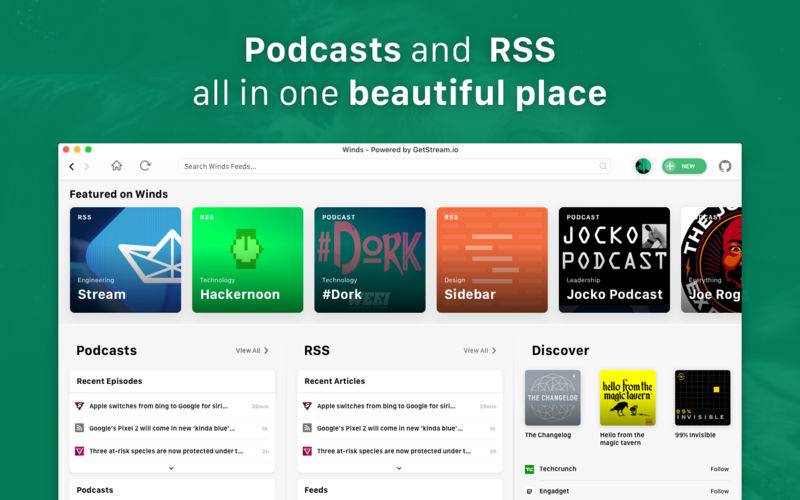 Winds is an easy-to-use, open-source app that allows you to follow your favorite RSS feed and listen to podcasts, all within a single application. In addition to managing these RSS and podcast subscriptions, it's discovery engine may just help you discover your newest addiction!