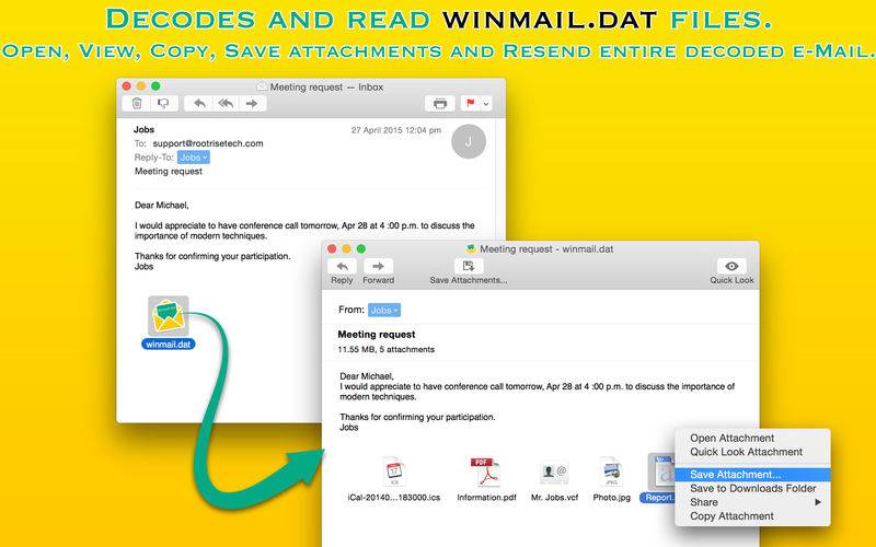 Winmail Reader is ultimate tool for reading "winmail.dat" attachment files. Winmail Reader is allows to open, view and save attachments from "winmail.dat" files. In addition, it also support batch extraction of winmail.dat files directly into Download folder.