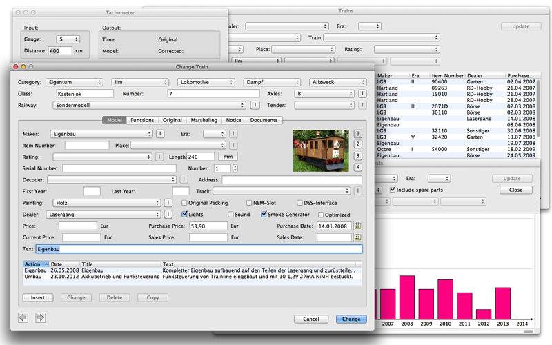 This program gives you a good overview of your model train collection. You can store all values (gauge, class…) of your models in xMoVe. But not only the information of the model can be stored. Also the dates of the original can be administered.