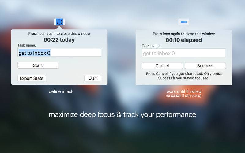(3) If you complete the focused period without getting distracted, you click “Success” or if you got distracted (or forget to stop the timer), you can “Cancel” the block